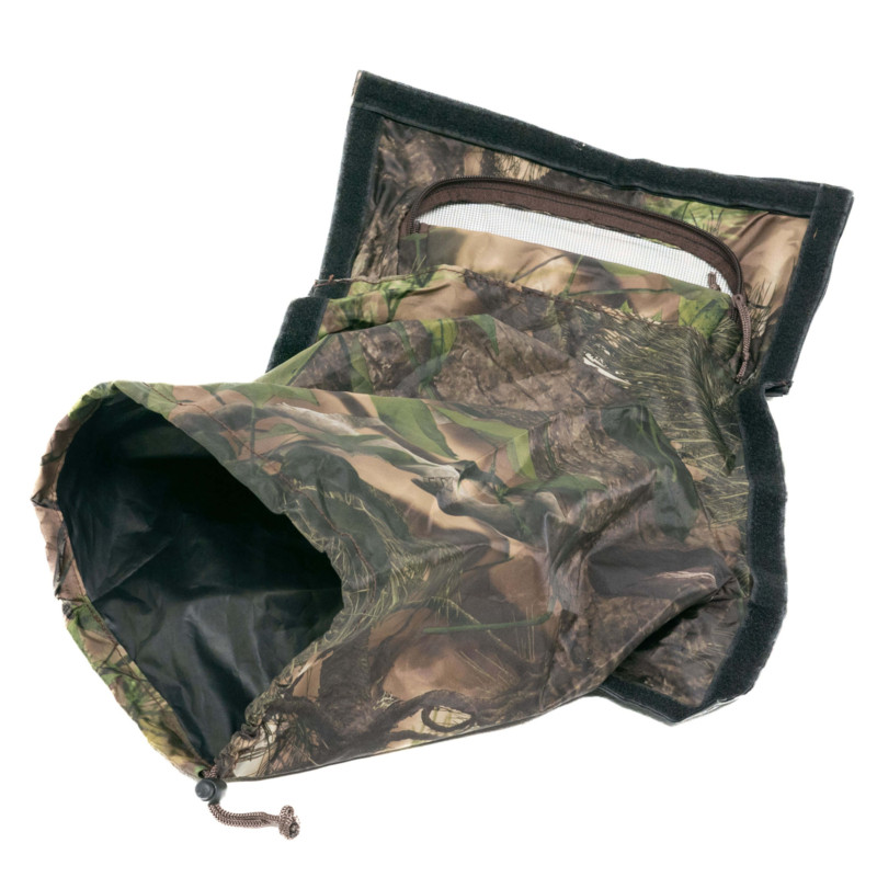 Un Manchon / Snoot camoufle votre objectif lorsque vous photographiez depuis une tente et le protège de la pluie et de la poussière. Un avantage supplémentaire est que vos mains sont invisibles lorsque vous manipulez votre appareil photo.