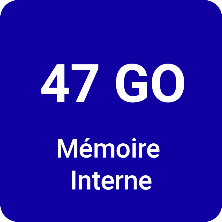 - Stockage : 47Go intégrés + cartes MicroSD jusqu'à 512Go