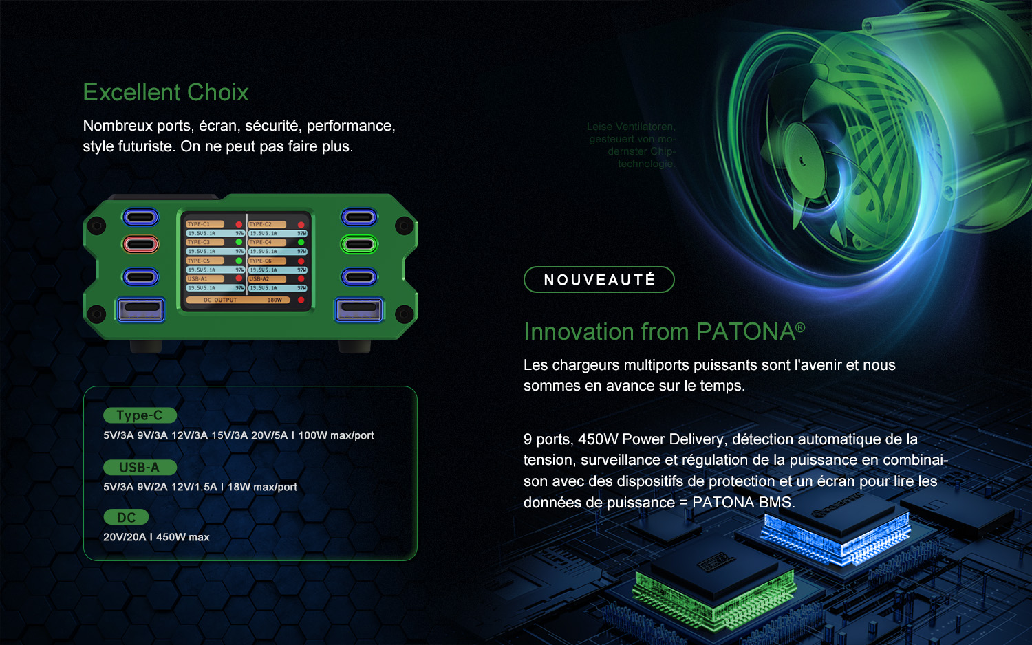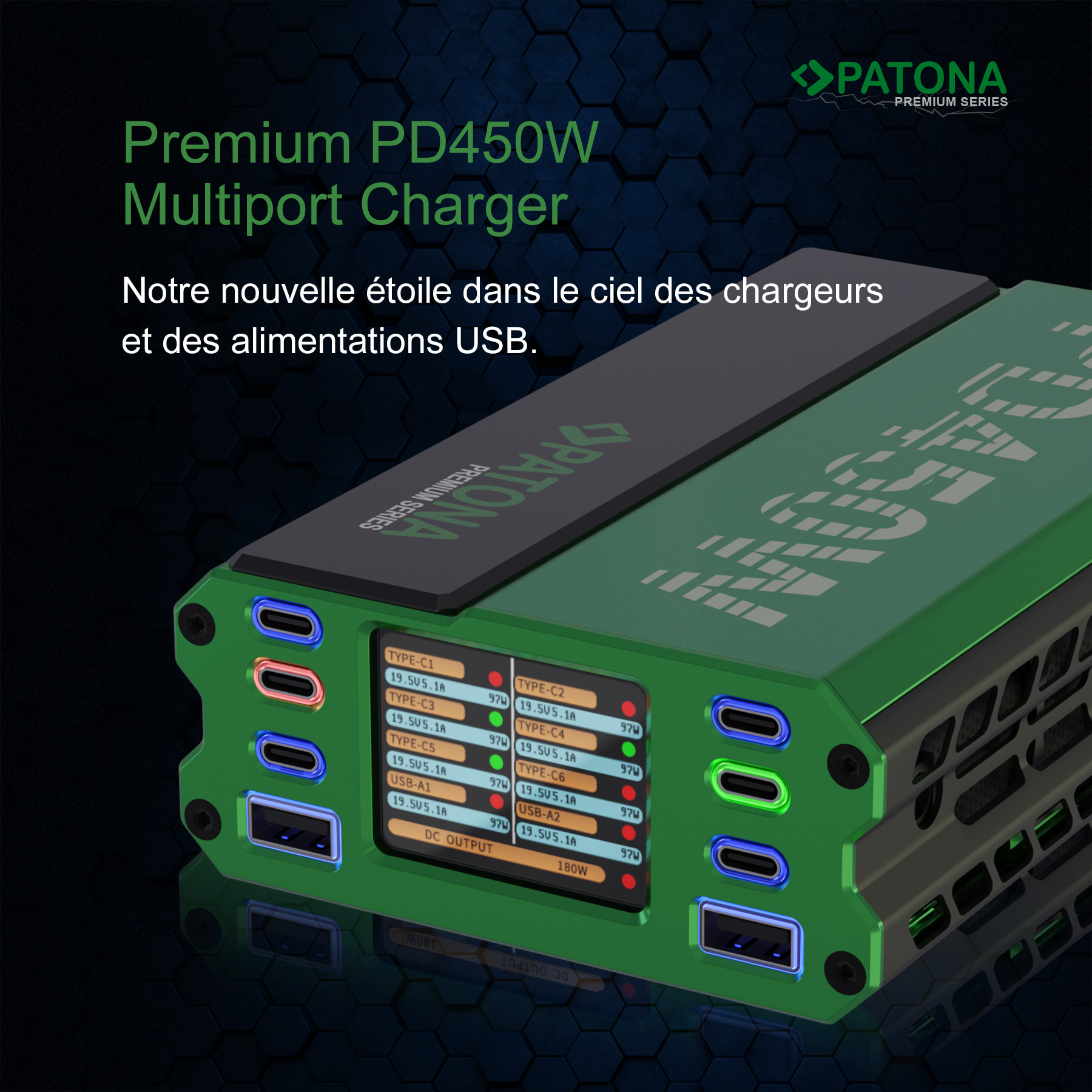PATONA CHARGEUR MULTIPORT PREMIUM PD450W (6x USB-C /2x USB-A/1x DC)