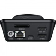 L’HyperDeck Shuttle HD est un enregistreur et un lecteur conçu pour être utilisé sur un bureau ! Il peut donc faire à la fois office d’enregistreur de masters et de lecteur de clips. Sa grande molette est parfaite pour faire défiler les médias et trouver le clip que vous souhaitez lire. Ses connexions HDMI permettent de relier des mélangeurs, des caméras et des moniteurs. L’appareil intègre même un prompteur.