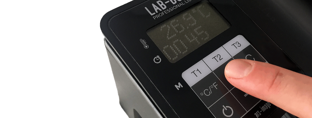 Étant donné que les produits chimiques peuvent être versés dans le réservoir avant le chargement du film dans la bobine avec le LAB-BOX, le couvercle professionnel peut aider à obtenir une lecture précise de la température des liquides dans le réservoir avant de commencer tout le processus de développement.