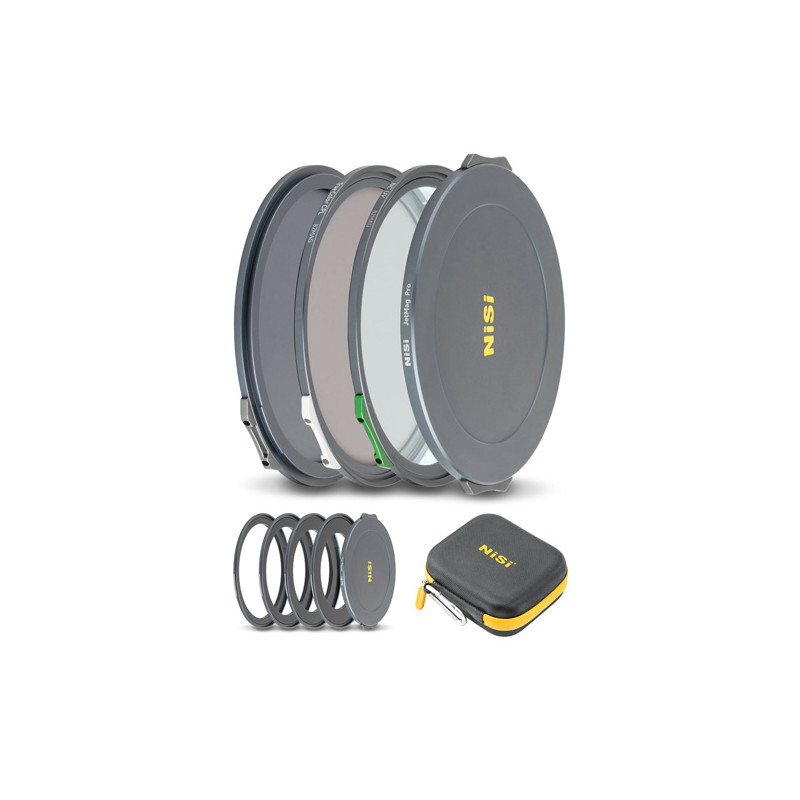 - Kit NiSi CINEMA JetMag Pro : ND4/ND8/ND16/ND64 /Black Mist 1/8/CPL True Color + 4 bagues : 82mm/67-82mm /72-82mm /77-82mm + 2 bouchons + étui