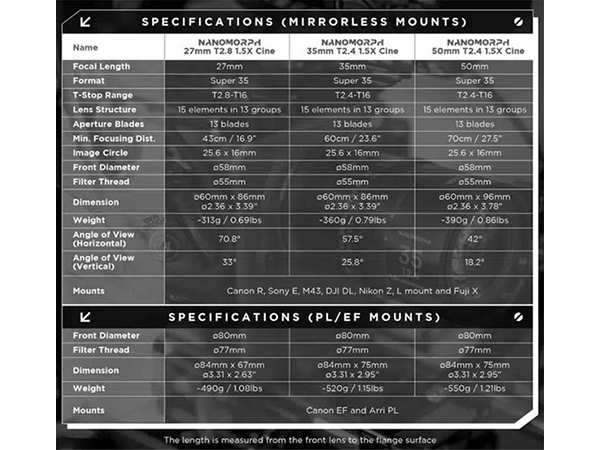 LAOWA 27/35/50MM BUNDLE ANAMORPHIQUE NANMORPH 1.5X S35