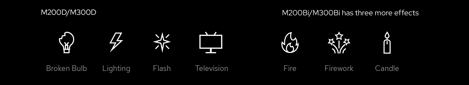 Les éclairages LED bicolores M300Bi et M200Bi avec sept effets FX intégrés apporteront le scénario idéal à votre studio simplement en appuyant sur un bouton.