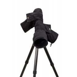 Housse anti pluie silencieuse avec 2 manchons d'accès pour boitier avec téléobjectif du 200-400 au 800 mm.