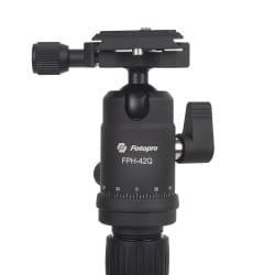 Le mécanisme de trépied à jambes à cinq sections permet de régler la hauteur rapidement. La série X-Go Gecko inclut la rotule Fotopro FPH-42Q avec plateau rapide Arca-Swiss.